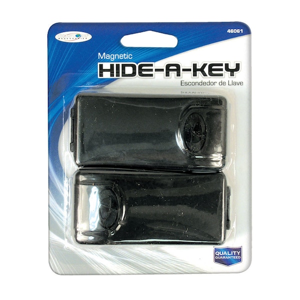 Keep your keys safe and secure with a Hide-A-Key box by Custom Accessories. This magnet box holds firmly to metal surfaces. Made out of a durable plastic design with a snap close, flip top lid. Never be locked out again. Convenient two pack to store multiple keys.