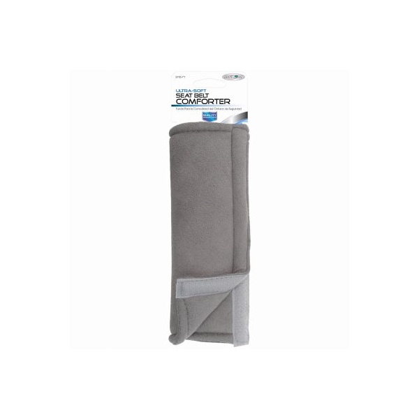 Grey UltraSoft Seat Belt Pad, pad reduces seat belt irritation and adds padded comfort, soft black suede material, universal to fit most seat belts, hook, loop adhesion makes installation quick, easy
