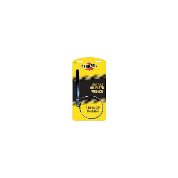 Pennzoil Large Strap Black Oil Filter Wrench. It is made of steel construction with rugged corrosion-resistant epoxy finish. The wide studded band prevents crushed filters. It fits 3-1/4in to 3-7/8in diameter filters.