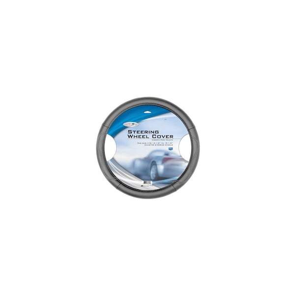 Steering Wheel Cover, Grey Leatherette, One Size Gray