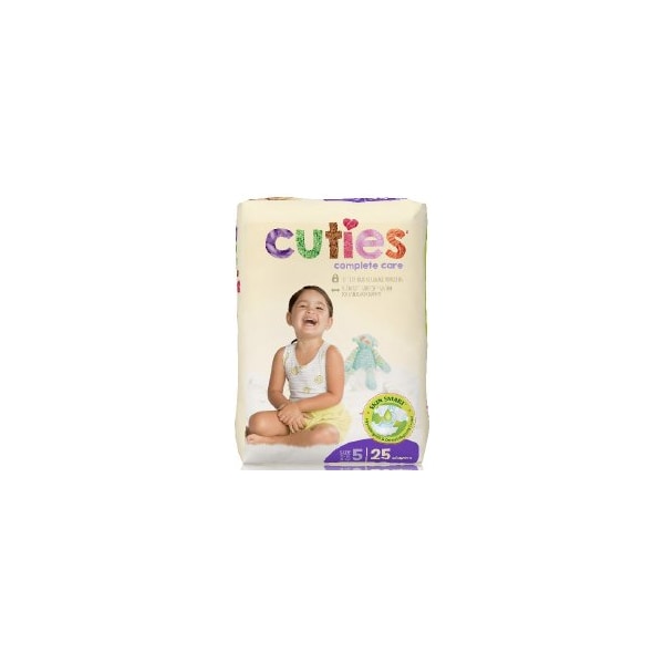 Expertly designed and responsibly made, Cuties diapers help keep your baby's sensitive skin nice, dry, comfy and cute, all day and every night. Comes in 5 too-cute prints. Size 5 fits toddlers weighing 27 or more lbs.