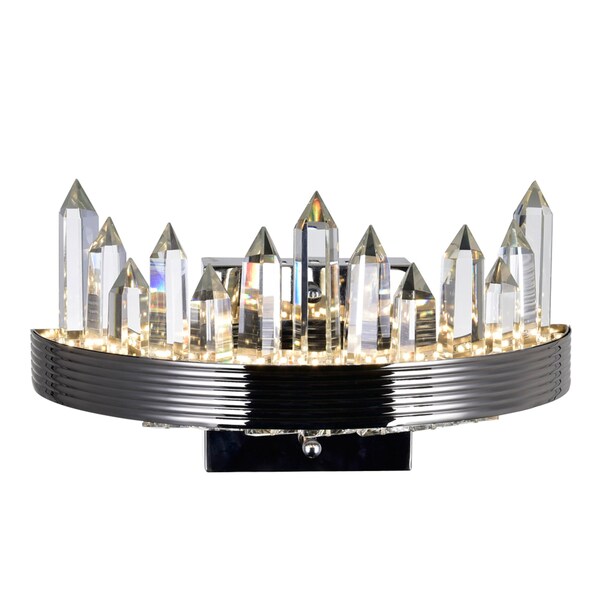 The Agassiz 12 inch LED Wall Sconce will polish your space with sophisticated style while maintaining its purpose of illuminating a space. This 12 inch wide wall lamp features a textured metal band in polished nickel finish topped with beveled clear crystal prisms with integrated LEDs. You can count on this lamp to cast a soft but crisp shine to your walls.