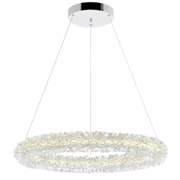 A bedazzling source of light, the Arielle 17 inch LED Chandelier will brighten up a space with a luxurious vibrance. This fixture has a 17 inch halo pendant wrapped in shimmering clear crystals. This medium-sized down chandelier is the perfect lighting for your round dining table. A pair or a trio of this fixture can also make your elegant kitchen island appear brighter and even more glamorous.