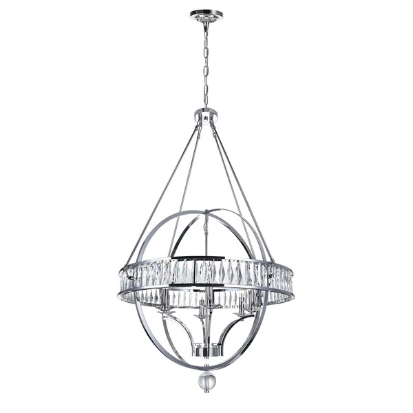 Looking for a striking light source? Take a look at the Arkansas 6 Light Chandelier in Chrome. This light fixture features an open orbit metal cage in chrome paired with a band of faceted crystals. The entire look spells traditional with a hint of industrial chic. This would make a great choice to pair with your other turn-of-the-century inchspired decor.