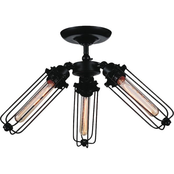 Add oomph and appeal to your space with the Benji 3 Light Flush Mount in Black. This 23 inch light fixture with three cylindrical cage frames holding tube bulbs can complete any kind of interior decor. It distributes enough and even light and will look good in the dining hall, kitchen, bedroom, or entertainment room. The design is function-driven yet it still showcases tons of character. This light source is a perfect choice for urban industrial or contemporary spaces.
