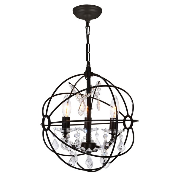 The Campechia 3 Light Pendant beautiful displays the eye-catching aesthetics of an ornate orb. This up mini chandelier exudes a rustic vibe with a luxe twist. The 13 inch round cage-like shade houses candelabra bulbs and dangling crystal beads. Consider this a beautiful and functional light fixture that will breathe rustic refinement to your living space.