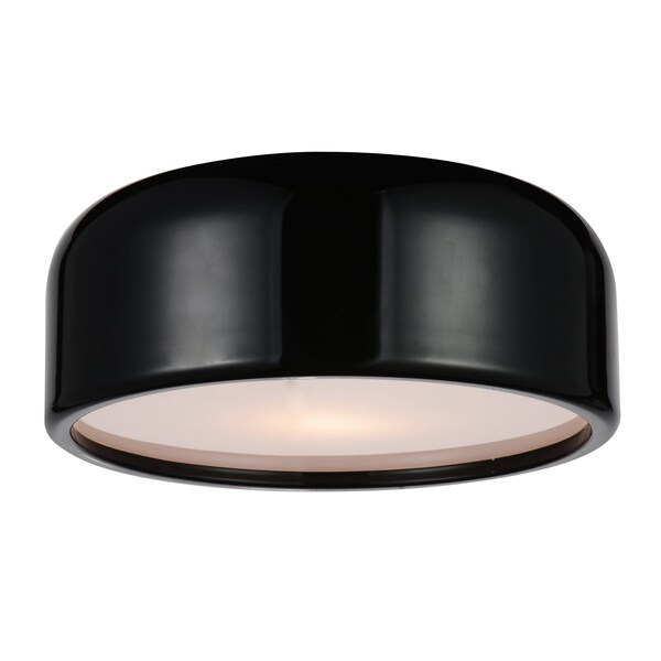 A modern choice for a bedroom, hallway, a mudroom or even a laundry room, the Campton 2 Light Black Flush Mount lets you illuminate a space in style. This light source has a rounded drum shade in smooth black finish. It measures 14 inches in diameter and is dimmer compatible. This ceiling light and its low profile is perfect for keeping a space well-lit and uncluttered.