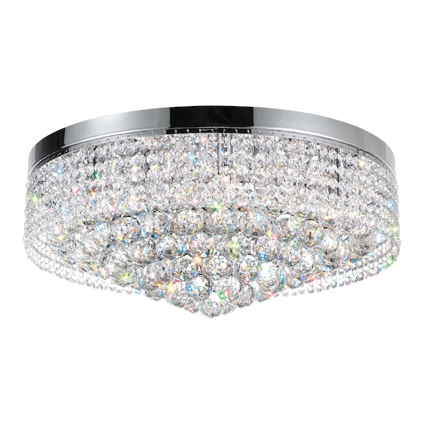 A truly stunning light source, the Cascade 10 Light Flush Mount will flood your space with a luxurious and inviting glow. Perfect for the living room, dining room, foyer, or bedroom, this 22 inch round fixture has glistening clear crystals as its drum shade. This is the lighting option to choose when you want to give a room a quick makeover with an opulent touch.