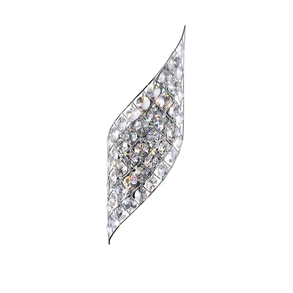 The Chique 4 Light Right Ribbon Wall Sconce is a glam wall light that can add refined elegance to any space. It is designed with a chrome-finished metal frame shaped like a ribbon swirl. The diamond pattern and crystal embellishment add to the opulence of this piece. Use this to light up a dark corridor or hallway, to add a layer of dramatic lighting in the dining or living room, or to infuse some elegant vibes in a powder room. This light fixture is also available in left-slanting form.