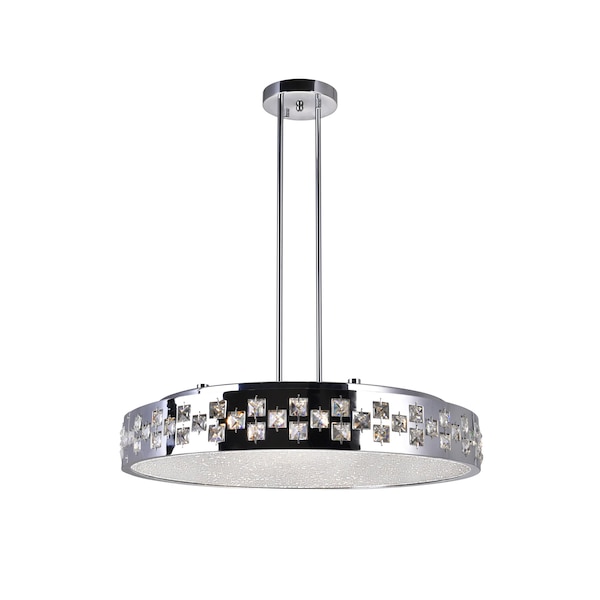 Like the famous princess this chandelier is named after, this light fixture radiates gentle beauty and refined elegance. This Cinderella 10 Light Chandelier is a down chandelier with a smooth uncluttered look. The round shade is complemented by two vertical rods that connect to a round canopy. Crystals set in square bezels shine from the chrome-finished perimeter of the shade. The circular panel at the bottom of the chandelier is covered in crystals, too, for light that's soft and opulent at the same time.
