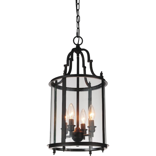 Whether you have an airy modern farmhouse or a moody urban industrial space, this light fixture will feel right at home. Designed with a lantern-like shade composed of oil rubbed bronze metal and clear glass panels, this 11 inch hanging light fixture will provide your interior with neat, modern rustic vibe. Light comes from candelabra bulbs that you can pair with a dimmer.