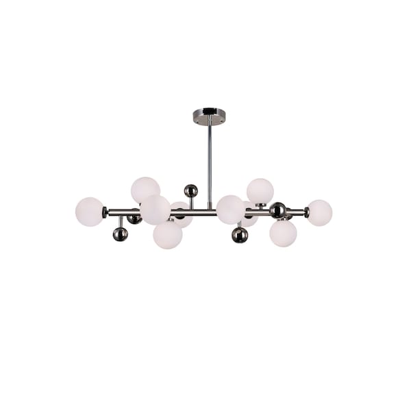 This is easily the finishing touch your space needs. The Element 10 Light Chandelier in Polished Nickel features a linear assembly of frosted glass orbs ready to shed some light on your kitchen island or dining table. Measuring 36 inches long and 11 inches wide, this oversized chandelier will infuse style, warmth, and substance to any room.