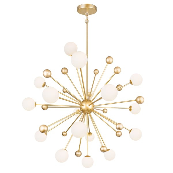 Give your black ceiling a daring touch by installing the Element 17 Light Chandelier in Sun Gold. Creating a luxurious contrast, this luminaire guarantees you of a glow that's urban, chic, and contemporary. Whether you place it in the dining room or the bedroom, this Sputnik-style chandelier in gold will elevate your home decor.