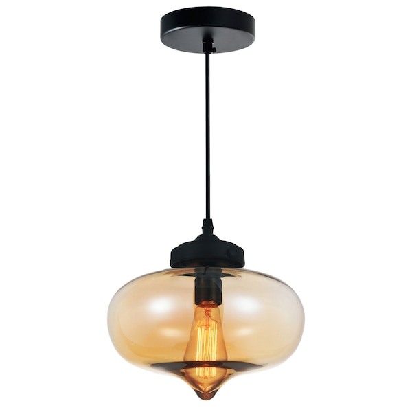 An artful light source, the Glass 11 inch Single Light Amber Pendant can make any room seem fancier and more pulled together. This fixture is designed with a black hardware and a shapely honey-colored glass pendant. The bulb is visible for a nostalgic look. This lighting option is perfect for modern spaces in need of a warmer and more intimate ambiance.