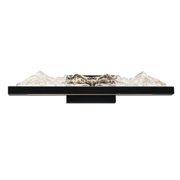Experience the grandeur of the Himalayas Integrated LED Vanity Light. A stunning lighting fixture that channels the serene beauty of the mountains into your bathroom. Impeccably crafted with intricate detail, this chandelier captures the essence of the Himalayan landscape, bringing a touch of natural inspiration to your space in a beautiful black finish. The cascading LED light emulate the tranquil flow of mountain streams, creating a harmonious and inviting ambiance.