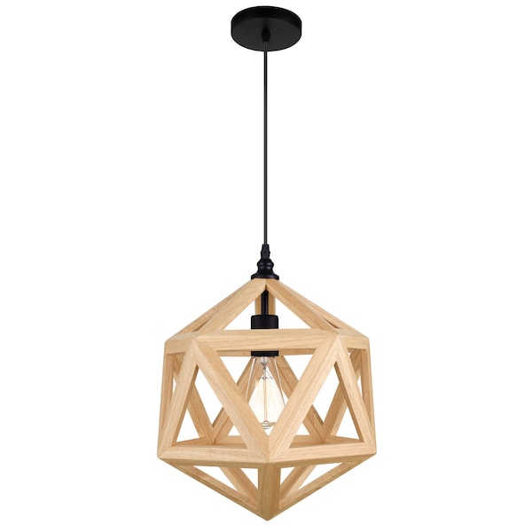 Designed with a geometric wooden frame, a candelabra bulb, and black metal hardware, the Lante 1 Light Pendant will bring radiant warmth to any space. The geometric silhouette updates the rustic vibe of this piece allowing it to fit in different interior design schemes. This light source is compatible with a dimmer switch.
