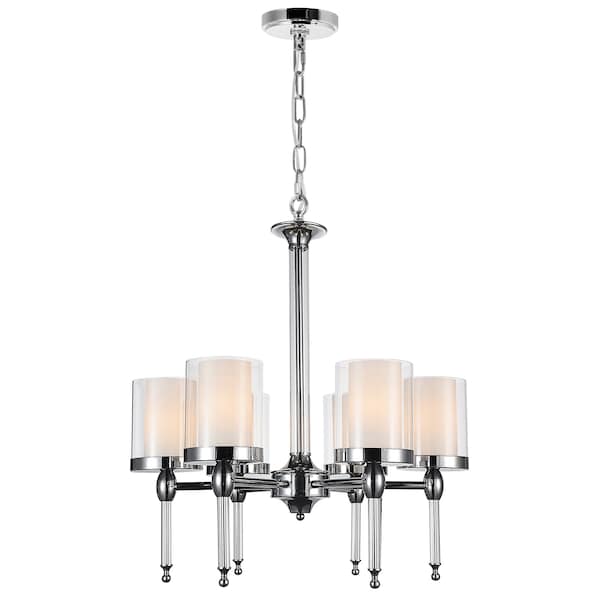 Perfect for those with less is more motto, the Maybelle 6 Light Chandelier displays a minimalist look without looking overly simple. This up chandelier with six chrome arms feature six glass shades reminiscent of traditional candle chandeliers. This classic-meets-contemporary design will easily cozy up a living room and bring character to an otherwise dull space.