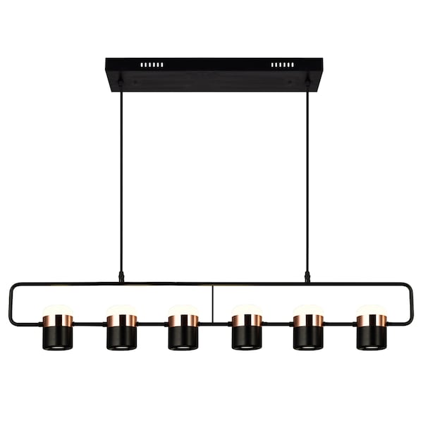 Contemporary and clean geometry make up the style of this oversized Moxie 6 Light LED Pool Table Chandelier in Black Finish. This linear light fixture is perfect for illuminating a kitchen bar, a dining table, or a pool table. Illumination will come from six light sources that are adjustable to your preferred light direction.