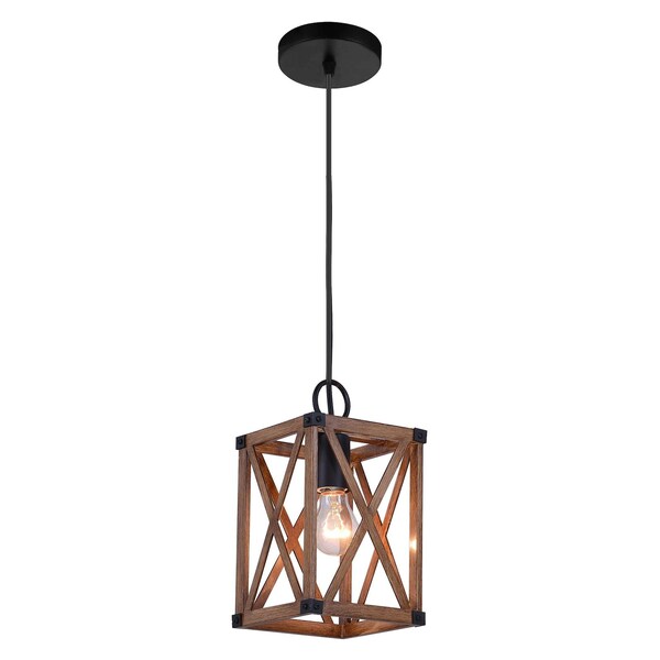 One Light Pendant With Wood Grain Brown Finish (Discontinued)