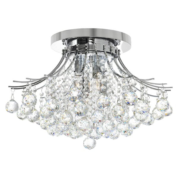 The Princess 6 Light Flush Mount in Chrome commands attention even in its relatively compact size. Measuring 20 inches in diameter and designed to sit close to the ceiling, this light source with dangling crystal ball accents will catch eyes and spark interest. Outfit any room with this luminaire and see how it can start conversations and bring refined elegance to the space.
