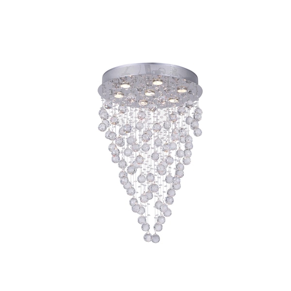 Create an air of romance and glamour in your home by installing the Rain Drop 7 Light Flush Mount Chandelier. This glam light features a 20 inch chrome canopy accompanied by strings embellished with faceted crystal balls. Place this in the living room, over a dining table or a kitchen island, or in the entryway. Its stunning silhouette and delicate twinkle effortlessly elevate the luxe factor of any room.