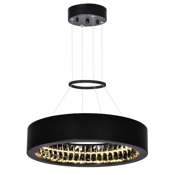 The Rosalina 16 inch LED Chandelier in Matte Black is a simple and understated solution to freshening up the look of your space. This down chandelier with a sleek circular design will update the look and feel of any room without adding too much visual weight. Instantly transform your living room, dining room, kitchen, or bedroom into a contemporary living space with this tastefully-designed modern ring chandelier.