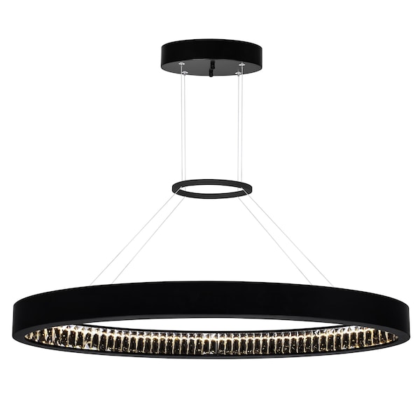 Exuding elegance that's subtle and contemporary, the Rosalina 42 inch LED Chandelier is the oversized light fixture that will shine an ultra-chic glow to your dining room. This chandelier designed with a ring of light pared down by a matte black finish gently diffuses light downwards. This chandelier's hanging height can be adjusted from 9 inches to 120-inches.
