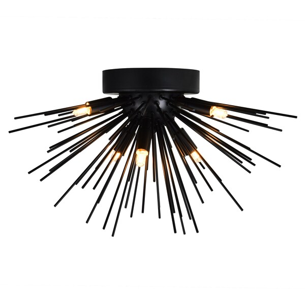 The Savannah 6 Light Flush Mount Light in black FInish will brighten up rooms and moods. This bold, brilliant, and bright luminaire is bursting with warmth and drama perfect for upgrading the look of your living room, home office, entryway or bedroom. Perfectly sized for low ceilings, this piece will make a statement without overwhelming the space.