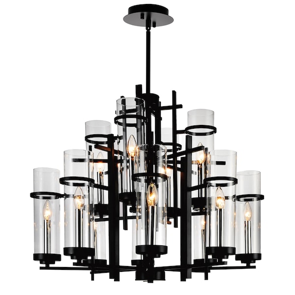 An artful light source for your contemporary home. This Sierra 12 Light Up Chandelier displays a beautiful mix of modern elegance and classic appeal. The 30 inch round formation of tiered cylindrical glass candle holders encasing candelabra bulbs will provide your space with adequate lighting and a relaxed, welcoming feel.