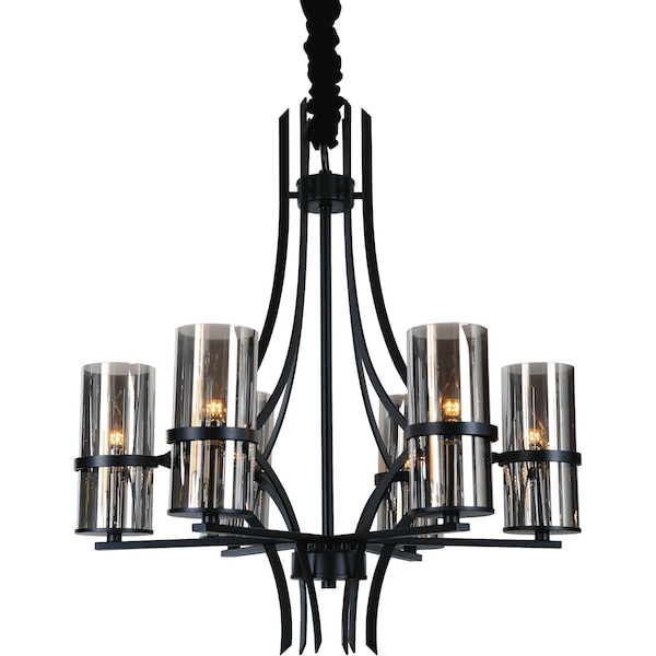 Elevate the look of your dining room with the Vanna 6 Light Chandelier. This contemporary light fixture is beautifully designed with a black metal frame holding cylindrical glass bulbs in a dramatic smoke shade. Peeking through each smoke glass tube is a candelabra bulb that shines a soft flattering radiance.
