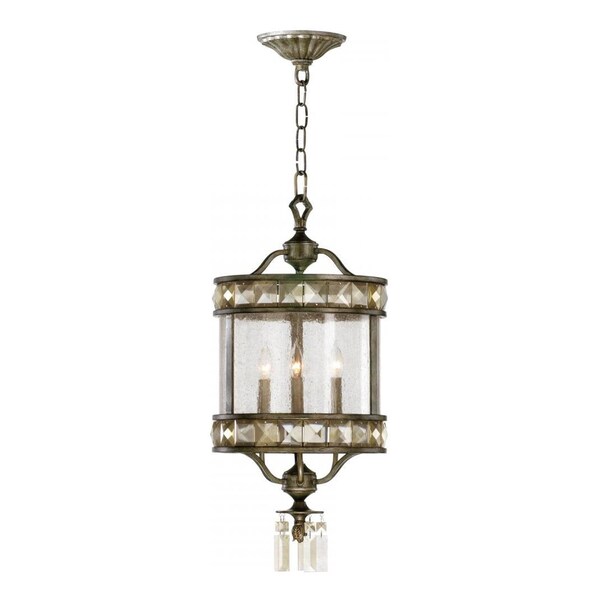 This Three Light Framed Glass Foyer Hall Fixture is part of the Buckingham Collection and has a St. Regis Bronze Finish and Water Glass. It is Dry Rated.