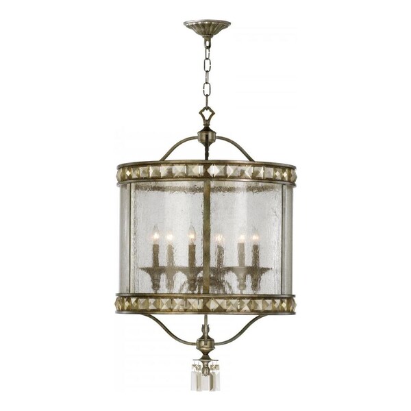 This Six Light Framed Glass Foyer Hall Fixture is part of the Buckingham Collection and has a St. Regis Bronze Finish and Water Glass. It is Dry Rated.
