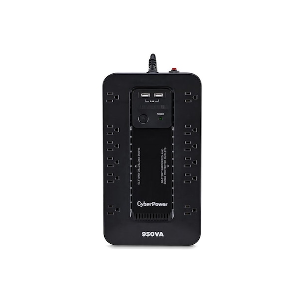 The CyberPower uninterruptible power supply UPS system provides surge protection for lightning-induced surges and other power events that can damage electronic equipment. This unit delivers enough battery backup to connected electronics during a utility power failure, so you can perform a graceful shutdown to protect against the loss of data and damage to valuable electronics including computers, gaming consoles and broadband routers. The SX950U has two USB charging ports with 2.4 amp shared total output which gives you a faster charging time. This unit is designed to minimize noise for a quieter work environment and to run efficiently to reduce power consumption.