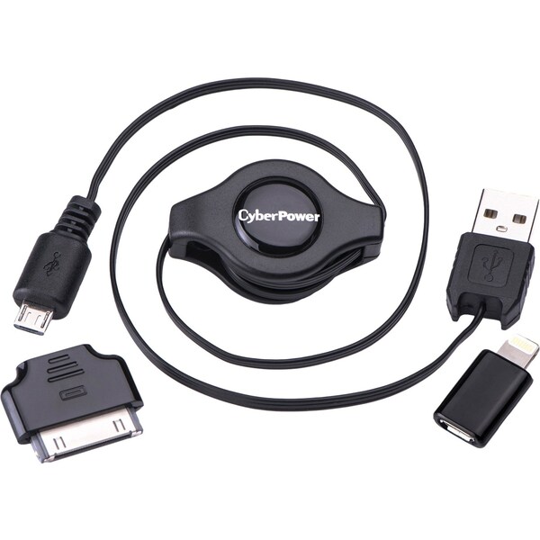 The Cyberpower Idevice Usb Cable Kit Contains 3 Pieces; A Retractable