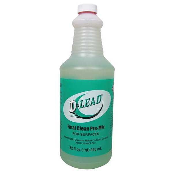 All Purpose Cleaner, Heavy Metal Decontamination Cleaner, Surfaces for Use On Hard Nonporous Surfaces, Bottle, 32 oz, Fragrance Unscented, Ready to Use/Concentrated Ready to Use, Recommended Dilution Ready to Use, Primary Chemical None, Liquid, VOC Content 5 Percent, NSF Rating Not Rated, pH Level 8, 9, pH Value Neutral, Product Series D-LEAD(R), Rinse Required Yes