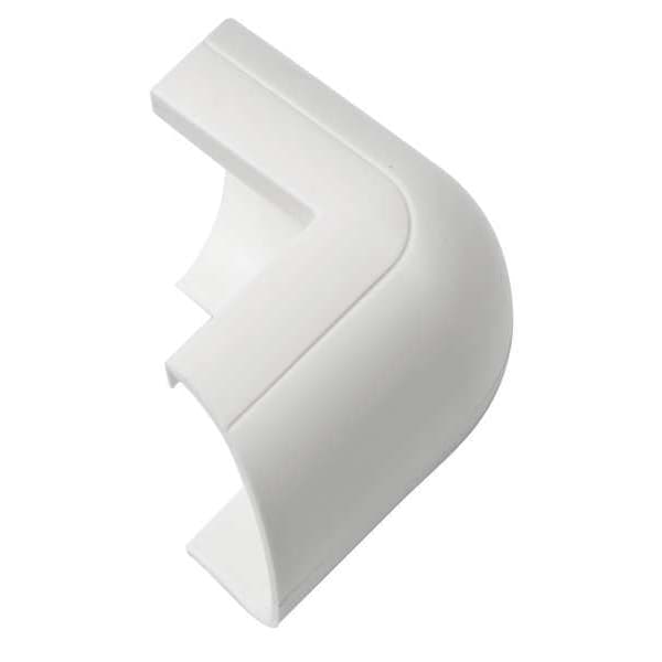 90 Degree External Elbow, Series D-Line Mini Raceway 1.18 in x 0.59 in (30x15mm) Item 38G172, 38G171, 60WA63 and 60WA64, For Raceway Height 1/2 in, For Raceway Width 1 1/4 in, For Raceway Width x Height 1 3/6 in x 9/16 in, Material PVC, Color White, Number of Channels 1, Mounting Style Clip Over, Backing Open, Compatible with Product Type Mini Raceways, Features Clip Over, Includes (5) 90 Degree External Elbow, Overall Depth 1 1/4 in, Overall Height 1/2 in, Overall Length 1 1/2 in