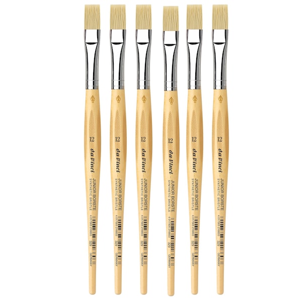 da Vinci Junior art brushes are a well built, easy to use brush developed to improve the quality of brushes for beginners. They can be used with any type of paint and are easy to clean. The ''hold it like a pencil'' handle shape makes for a comfortable and familiar grip. The brush won't roll away if dropped. It has a reinforced brush head for heavy wear that will always hold its edge. Unlike most cheaper brushes, da Vinci junior features a ''rust resistant'' seamless polished ferrule. Made in Germany. Sustainable wood handles. Vegan. Eco-Friendly. Sold as a pack of 6.