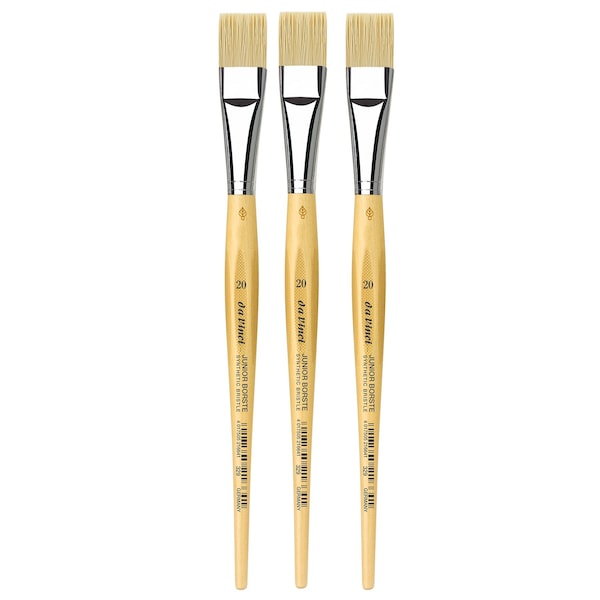 da Vinci Junior art brushes are a well built, easy to use brush developed to improve the quality of brushes for beginners. They can be used with any type of paint and are easy to clean. The ''hold it like a pencil'' handle shape makes for a comfortable and familiar grip. The brush won't roll away if dropped. It has a reinforced brush head for heavy wear that will always hold its edge. Unlike most cheaper brushes, da Vinci junior features a ''rust resistant'' seamless polished ferrule. Made in Germany. Sustainable wood handles. Vegan. Eco-Friendly. Sold as a pack of 3.