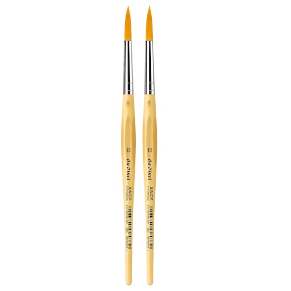 da Vinci Junior art brushes are a well built, easy to use brush developed to improve the quality of brushes for beginners. They can be used with any type of paint and are easy to clean. The ''hold it like a pencil'' handle shape makes for a comfortable and familiar grip. The brush won't roll away if dropped. It has a reinforced brush head for heavy wear that will always hold its edge. Unlike most cheaper brushes, da Vinci junior features a ''rust resistant'' seamless polished ferrule. Made in Germany. Sustainable wood handles. Vegan. Eco-Friendly. Sold as a pack of 2.