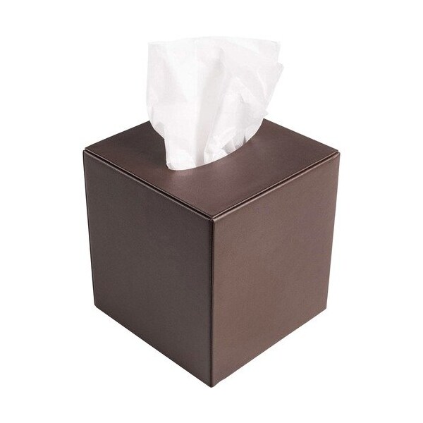 Tissue Box Cover features an easy-to-use design that slides on and off of your tissue box to quickly replace depleted tissues. Faux-leather provides a classy appeal to any professional setting. Soft velveteen protects surfaces from scuffs and scratches. Tissue box cover is designed for cube-shaped tissue boxes not included.