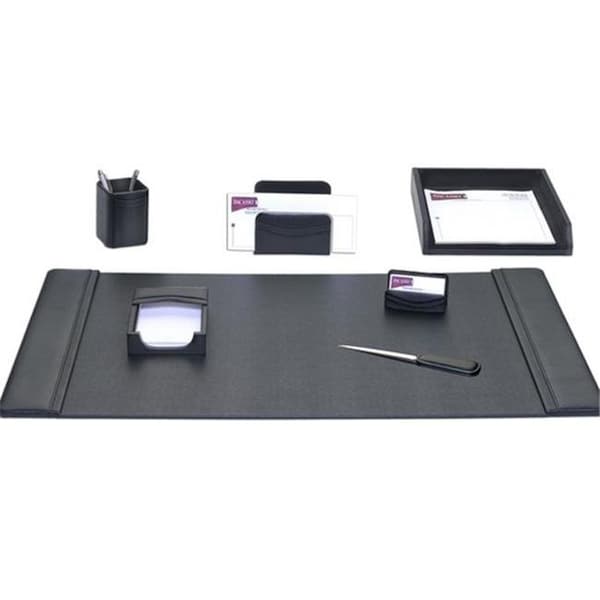7-Piece Desk Pad Set Includes:, Desk Pad (Optional Size), Memo Holder, Business Card Holder, Pencil Cup, Letter Holder, Letter Opener, Letter Tray