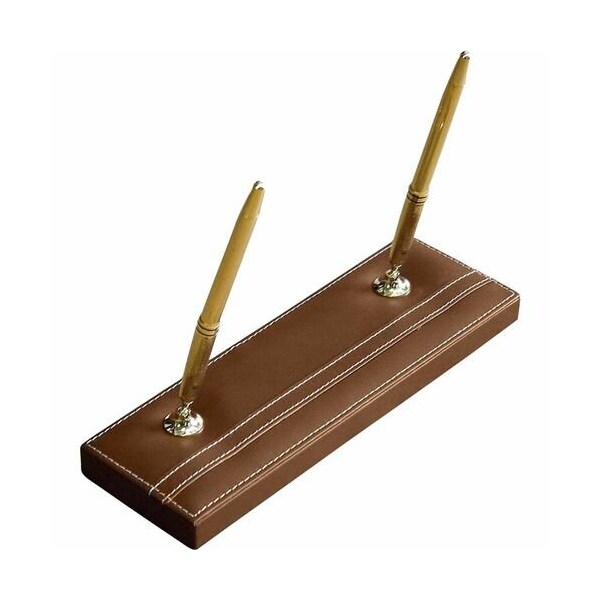 Double Pen Stand features decorative stitching to deliver a classy look. Top-grain leather adds professional style to any work space. The bottom is lined with soft velveteen to protect surfaces from scuffs and scratches. Pen stand includes black rolling ball pens. Pens accept Parker rolling ball pen refills.