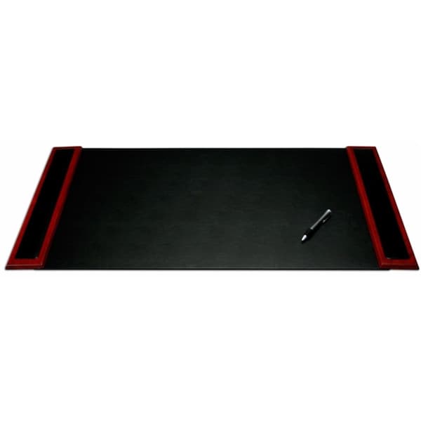 This 34x20 desk pad features solid wood side rails with top-grain black leather inlays.<li>Materials
