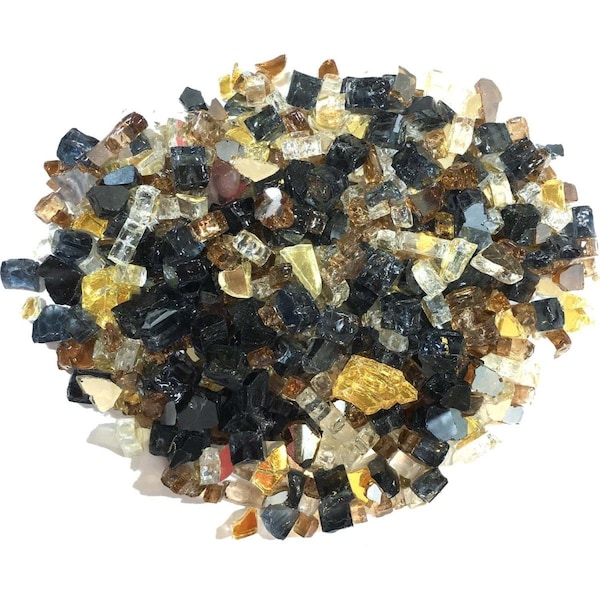 0.25 in. Reflective Fire Glass, Black, Copper & Gold