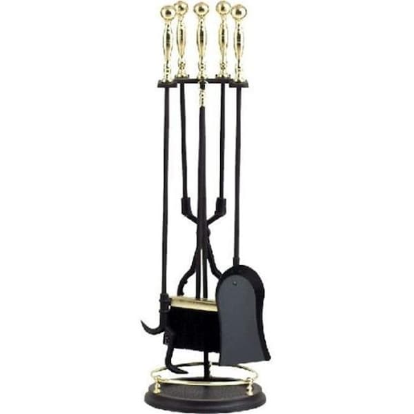 Dagan 3456 Fireplace Tool Set; Polished Brass & Black - 5 Piece
