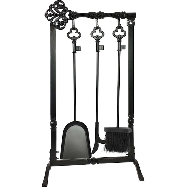 Key Design Fireplace Tool Set, Black - 4 Piece