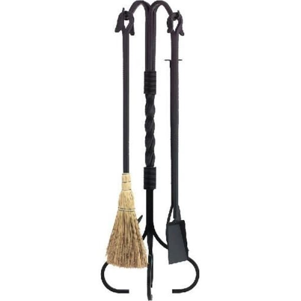Wrought Iron Fireplace Tool Set, Black - 5 Piece
