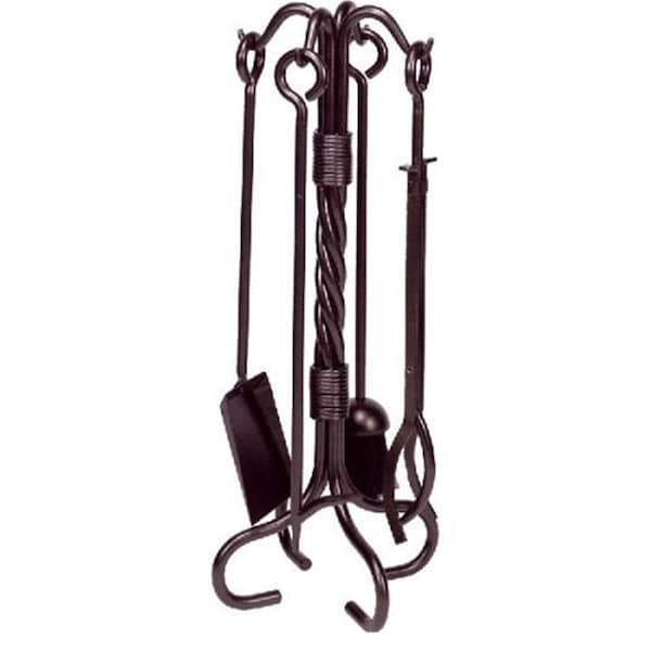 Wrought Iron Fireplace Tool Set with Twist Handles, Bronze - 5 Piece