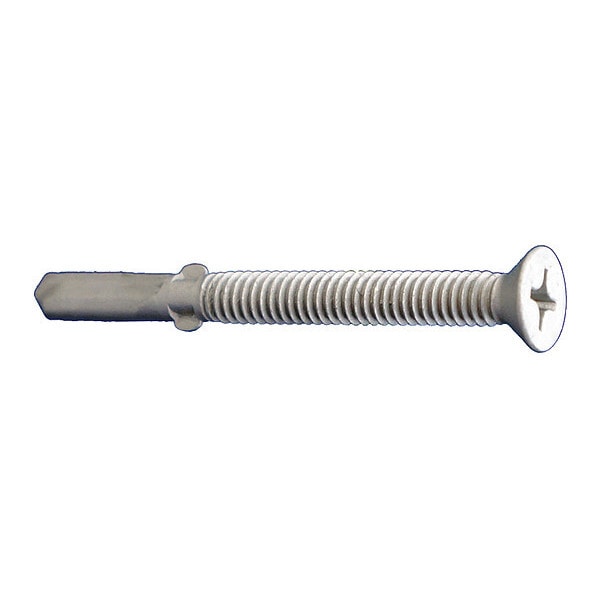 Self-Drilling Screw, #12-24 x 2 in, Dagger Guard Steel Flat Head Phillips Drive, 2000 PK