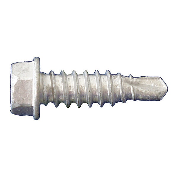 Self-Drilling Screw, 1/4"-14 x 7/8 in, Dagger Guard Steel Flange Hex Head External Hex Drive